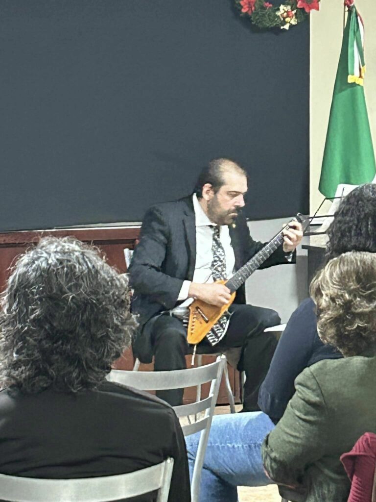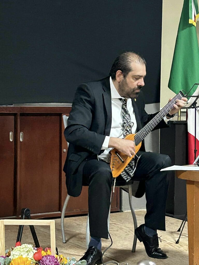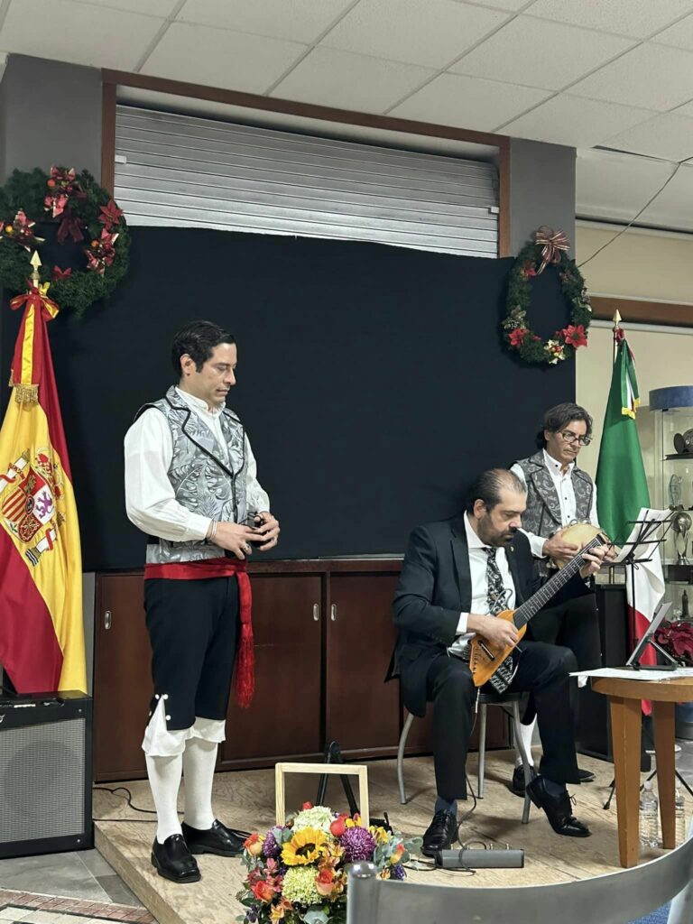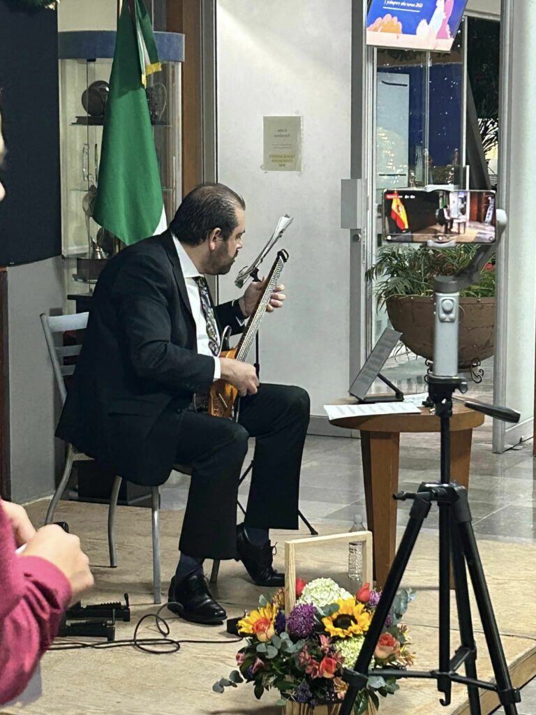 El 16 de diciembre de 2023 nuestro Profesor Superior de Guitarra y Director Técnico de la Banda de Gaitas y grupo de guitarra ofreció un novedoso concierto electroacústico con piezas del siglo XVI a la actualizad. Se dio protagonismo a los alumnos que durante 27 años han formado parte del grupo. Se les invitó a presentar al maestro y dieron sus impresiones sobre su experiencia. El concierto se centró especialmente en la música española a través de cinco siglos. Finalizó con un brindis de honor y la convivencia con el excelente público que asistió al evento.